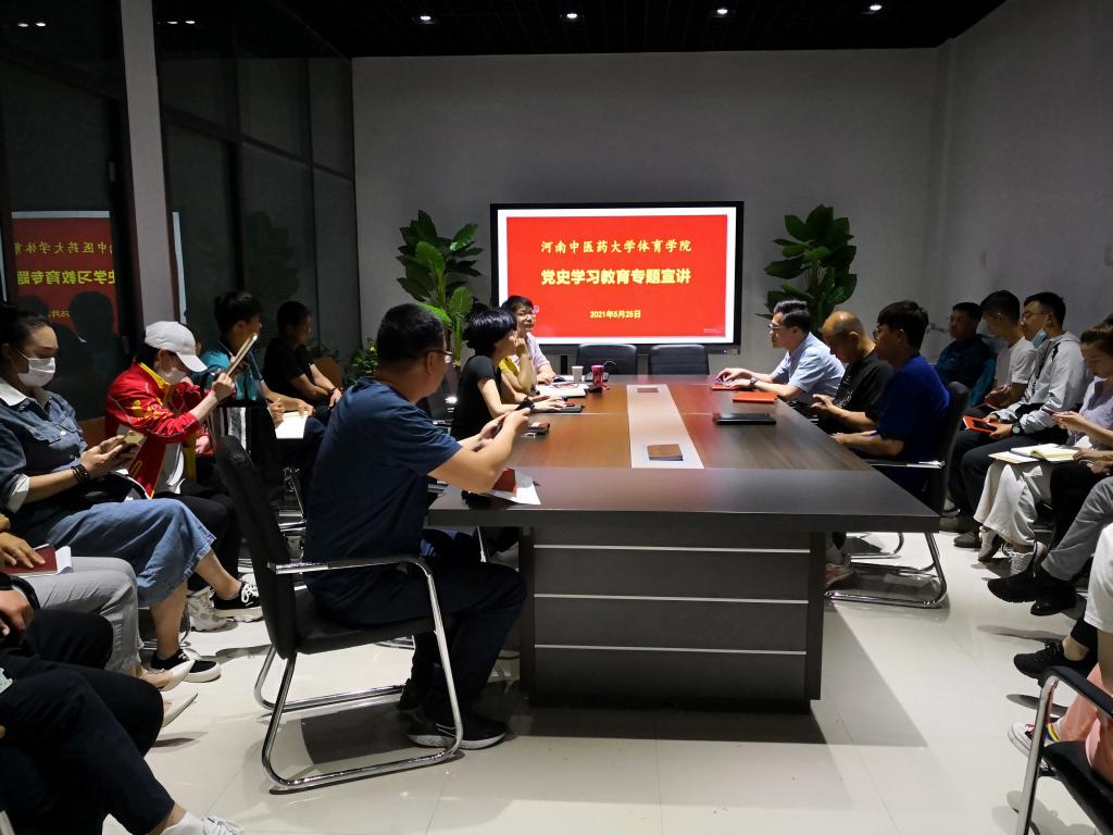 本网讯(文图/马琳)为进一步推进党史学习教育,2021年5月25日下午,世界杯外围投注(中国)官方网站党史学习教育宣讲团成员、马克思主义世界杯外围投注 楚帅老师应邀为世界杯外围投注(中国)官方网站 30余名教职工进行了党史学习教育专题宣讲。领导班子和全体教职工参加了本次宣讲,活动由党总支书记孟肖飞。