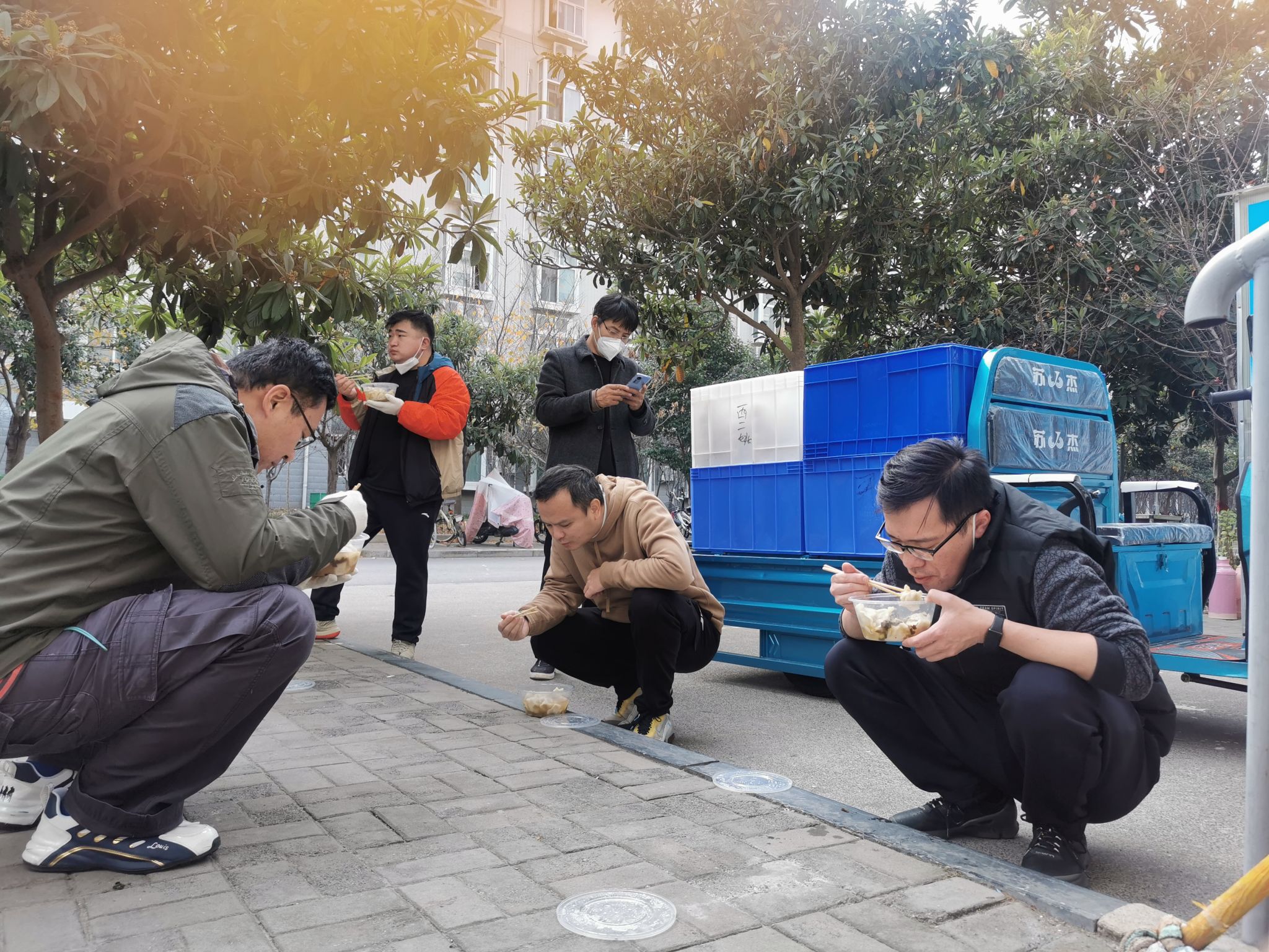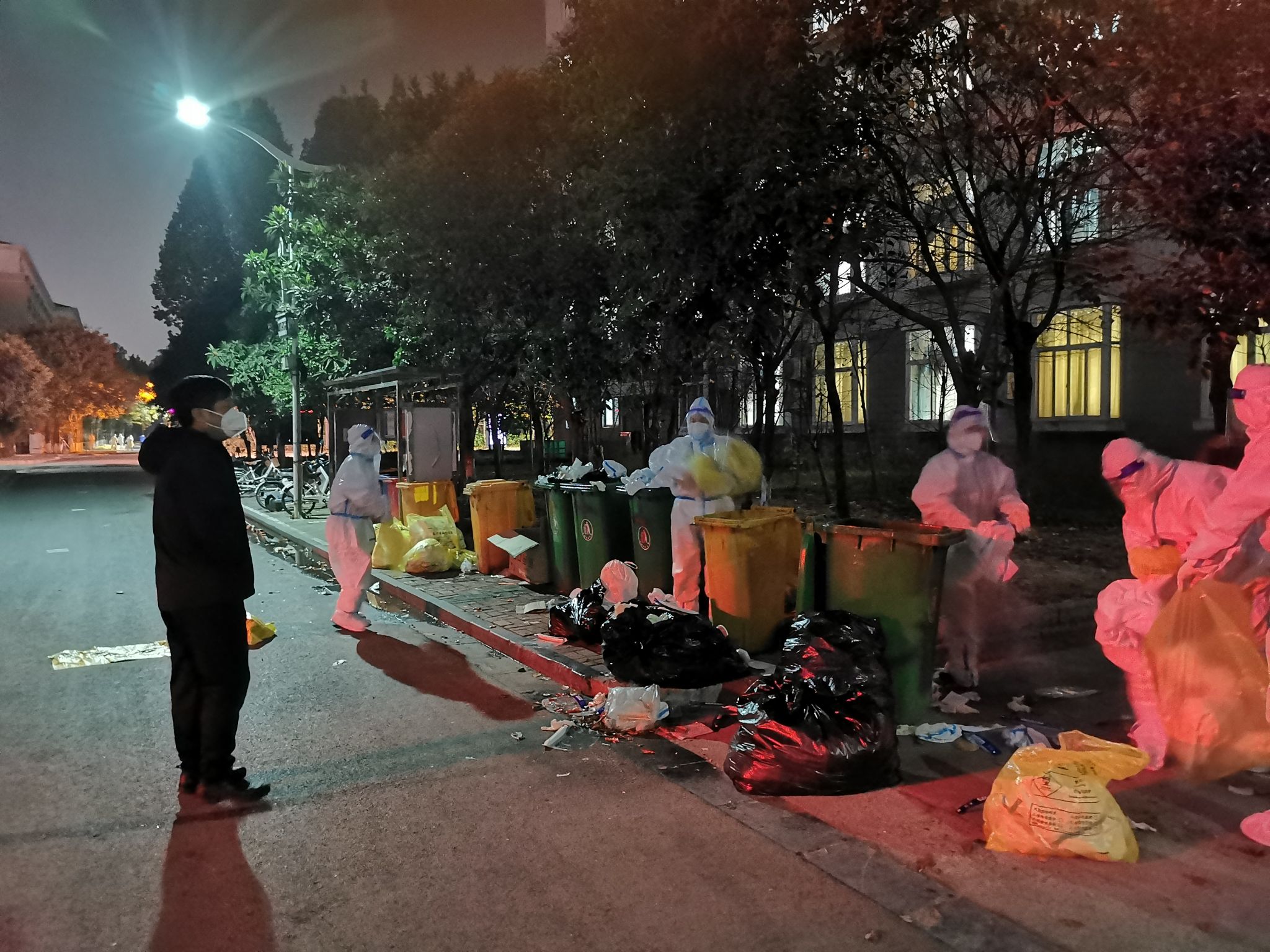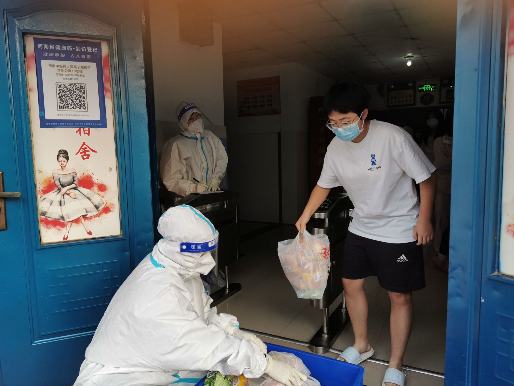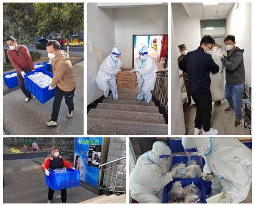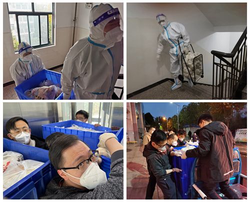 起早贪黑坚守,保障学生起居。为让每一位学生吃上热饭热菜,一日三餐成了志愿老师们最重要的工作。分餐、搬运、消毒、发放……每餐任务近3个小时才能完成,队员们还要见缝插针的完成物资请领、垃圾回收、中药发放、物品消杀、工作流程优化等工作。稍有时间,还要安排学生事务办理、答疑和线上教学。为了确保餐食物资不漏发,保证同学们能及时吃上热饭,队员们将学生分布情况制作成清单,详细标注日期、人数和餐别,发餐前认真核对,发餐时反复叮嘱,有效保障了餐食和物资发放的高效准确。忙完一天的工作,常常已是晚上八九点钟,老师们脱下防护服,匆匆扒上几口饭,稍事休整,又以饱满的热情投入到了下一场战斗中。