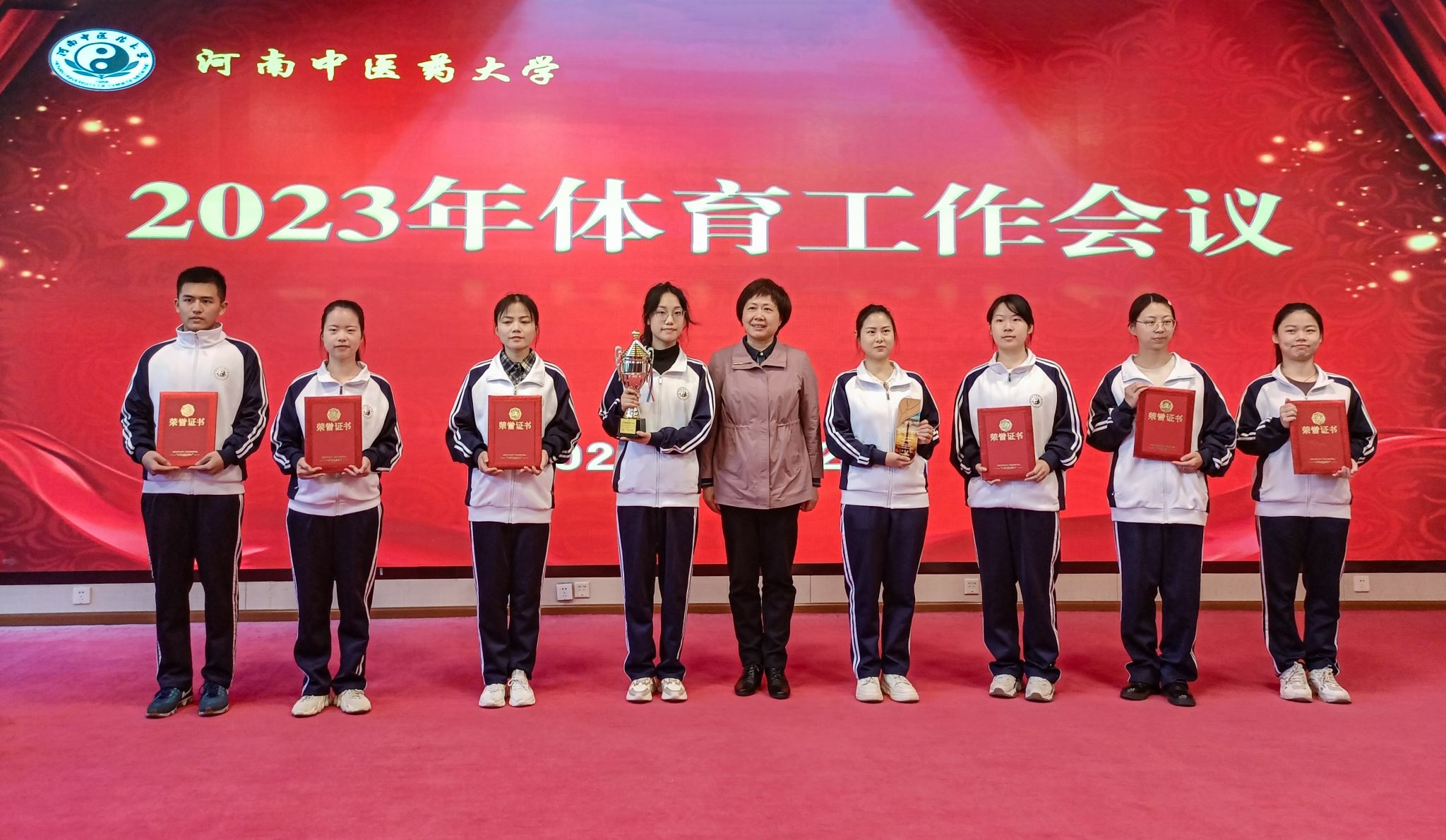 校党委书记李小芳为获省级及以上奖项运动员代表颁奖
