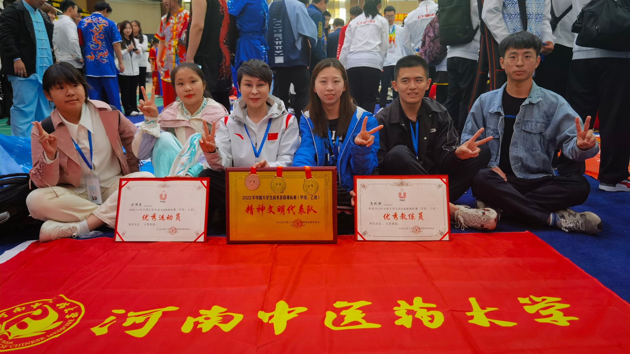 本次赛事我校共派出5名运动员与众多选手同场竞技,在为期4天的比赛里,大家奋勇拼搏,发挥出色,最终获得2项第一名,1项第三名,2项第四名,3项第五名,2项第六名的优异成绩;惠秋丽被评为“优秀教练员”,任伟杰被评为“优秀运动员”,同时荣获2022年中国大学生武术套路锦标赛(甲组、乙组)“精神文明代表队”称号。