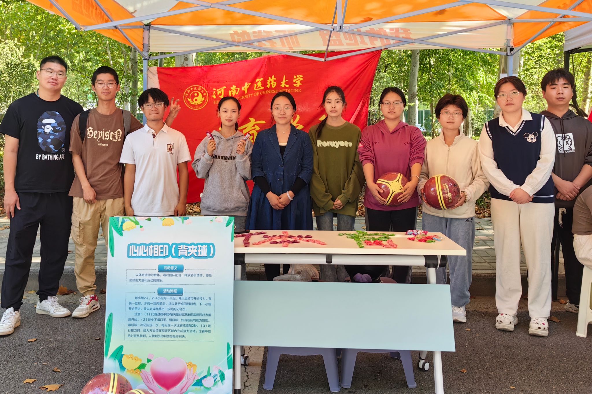 本网讯(文/图 郝恬然)2023年10月24日,我校“培育健康心灵,守护美好未来”心理健康教育宣传周现场活动在龙子湖校区神农西路举行。世界杯外围投注(中国)官方网站 负责组织心心相印(背夹球)活动。