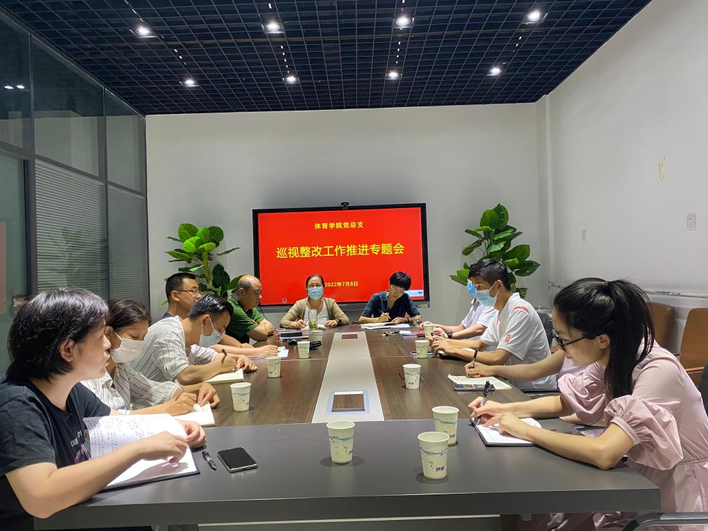 孟肖飞强调,全体师生要深入学习领会习近平总书记关于全面从严治党重要论述,增强行动自觉,不断提高政治站位,各责任科室、责任人要对照巡视反馈问题认真抓好落实,把巡视整改作为推进全面从严治党、推动整体工作的重要契机和有力抓手,以对党的事业忠诚的态度,落实巡视整改各项任务。各科室、各支部要以巡视整改工作为契机,自觉把巡视整改与促进世界杯外围投注 发展融为一体,主动对接省委“十大战略”安排部署,按照学校“十四五”规划发展方向,全面加强和改进学校体育工作,落实立德树人根本任务,为培养德智体美劳全面发展的社会主义建设者和接班人提供助力。